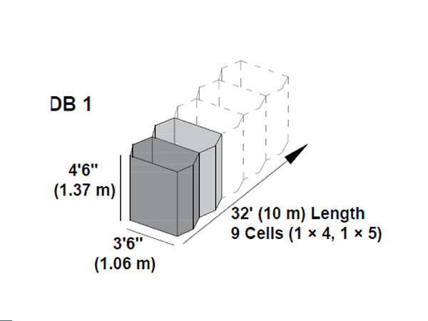 The MIL defensive barrier is made of a collapsible wire mesh container and heavy duty fabric liner, and used as a temporary to semi-permanent levee or blast wall against explosions or small-arms. It has seen considerable use in Iraq and Afghanistan.